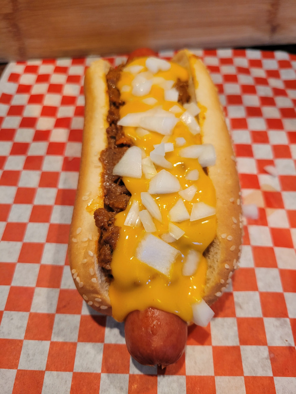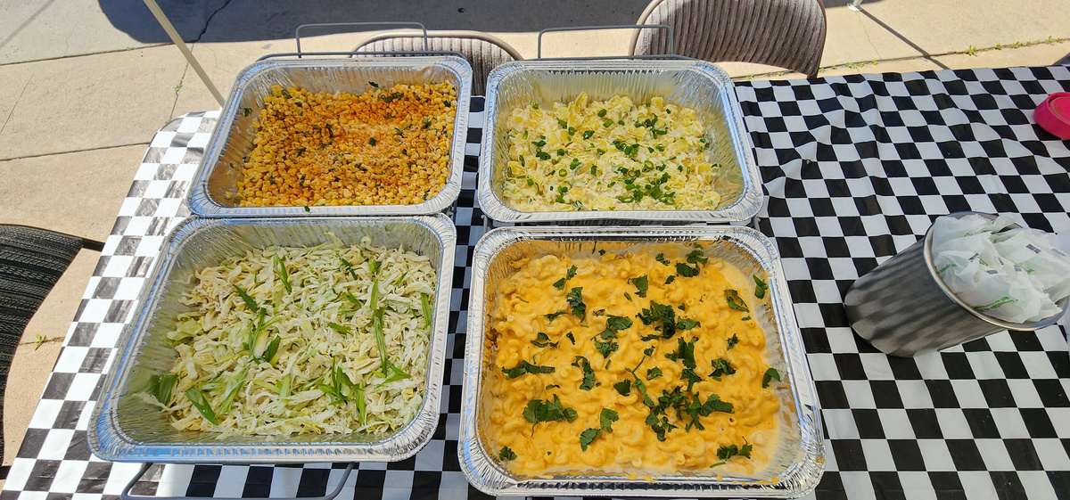 Homemade Sides: Beef Chili, Cheese Sauce, Elote, Coleslaw, Potato Salad, Macaroni & Cheese